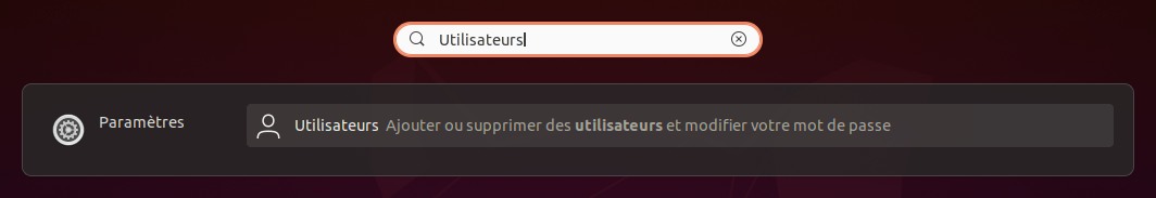 Paramètres > Utilisateurscomme sous Ubuntu.