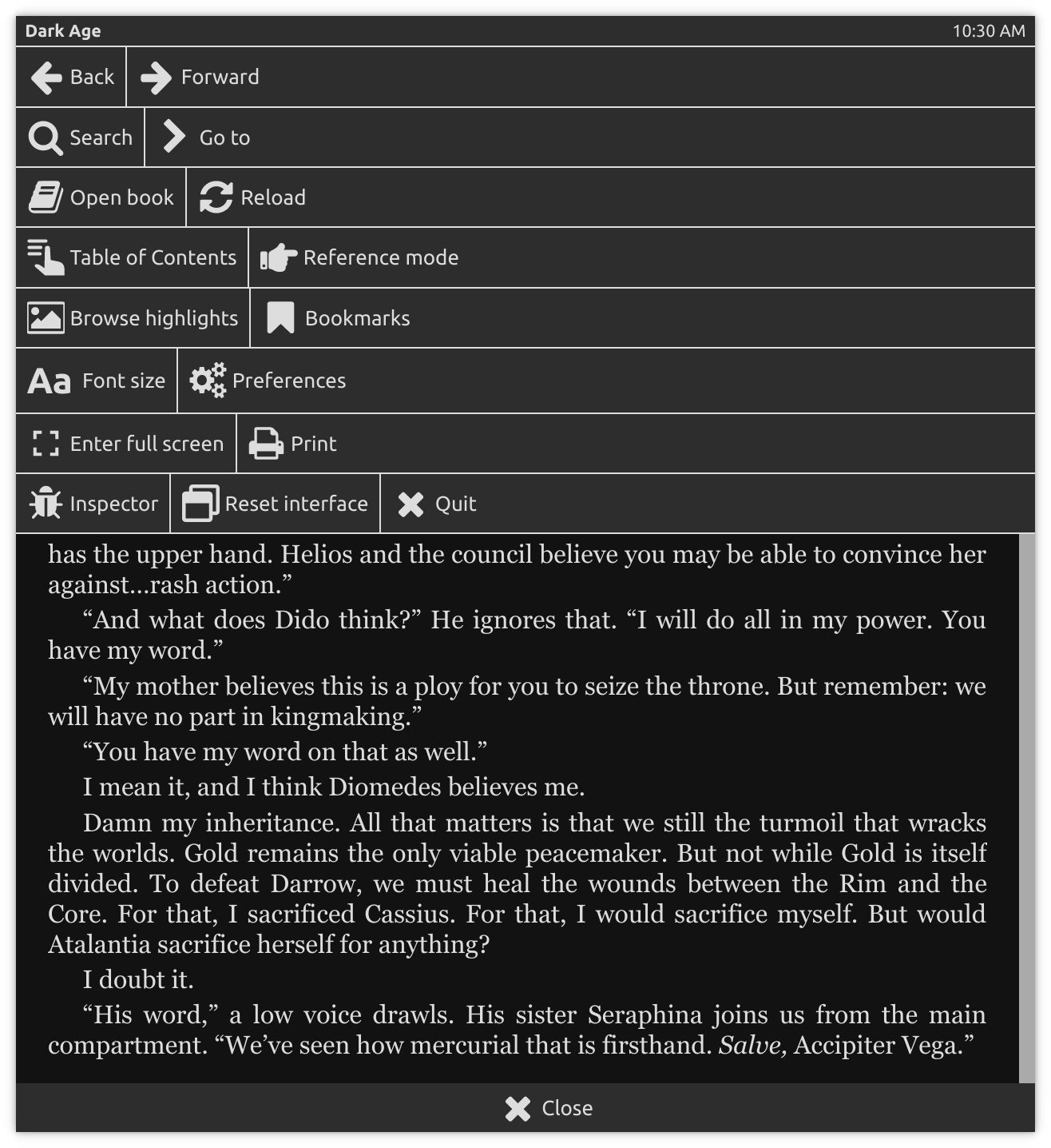 Désormais, Calibre 5.0 supporte complètement le mode nuit (ou sombre) pour tous ses composants (gestionnaire, visionneuse, éditeur, …). Ainsi, sous Windows ou macOS, si le mode nuit est actif au niveau de l’OS, alors Calibre s’adaptera automatiquement l’affichage de ses interfaces avec le mode Nuit.