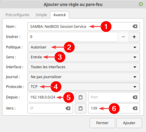Autoriser les connexions entrantes pour samba dans le pare-feu de Linux Mint et ainsi rendre accessible votre partage réseau