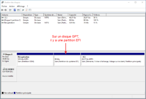 Si vous avez une partition EFI, votre disque a un système de partition GPT :