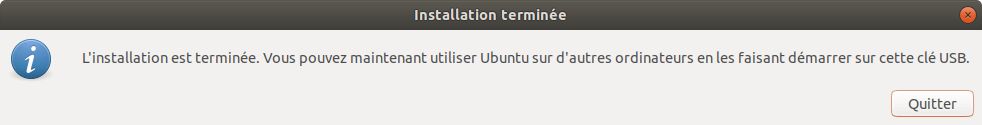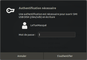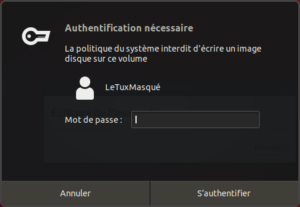 Pour réutiliser votre clé USB en périphérique de stockage, il faudra utiliser Gnome Disks ou la ligne de commande pour la reformater… (voir comment faire ceci plus loin dans le tutoriel)
