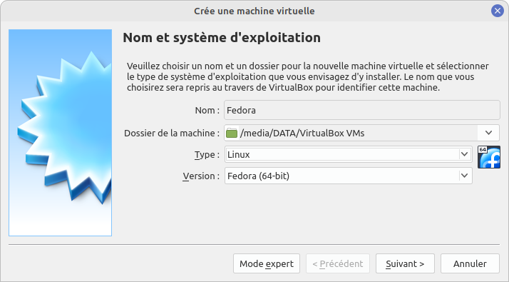Installer Fedora dans VirtualBox