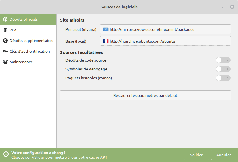 Puis, configurez des miroirs locaux pour les sources des logiciels en sélectionnant les plus rapides.