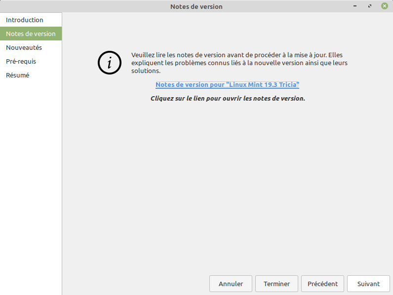Avant de commencer à mettre à jour vers Linux Mint 19.3 Tricia