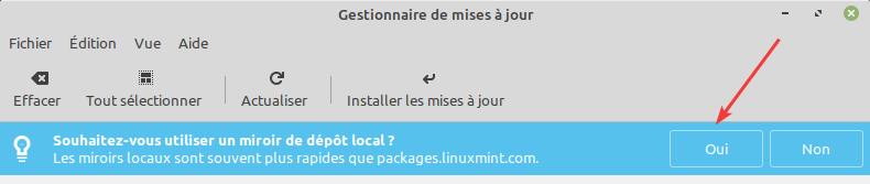Après le redémarrage, retournez dans le gestionnaire de mises à jour et redéfinissez un dépôt (serveur) local comme source pour l’installation des futures mises à jour et des logiciels.