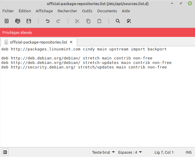 /etc/apt/car ces fichiers pointent toujours vers les dépôts sources prévus pour LMDE 3 et Debian 9 « Stretch ».