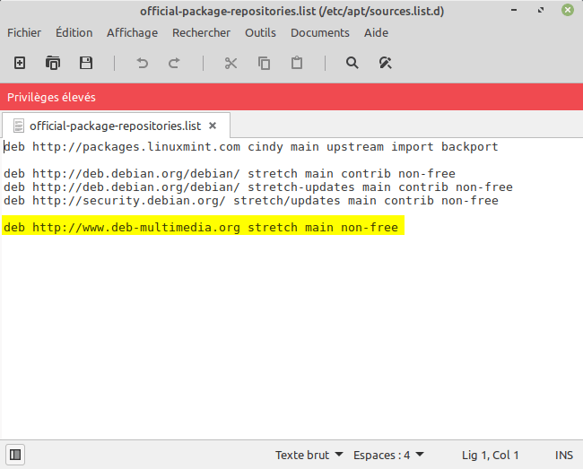 Puis supprimez la ligne en bas du fichier : deb https://www.deb-multimedia.org stretch main non-free :
