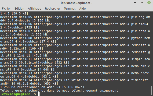 Et relancez la commande autant de fois que nécessaire, jusqu’à ce que tous les paquets soient correctement téléchargés et qu’il n’y ait aucune erreur.