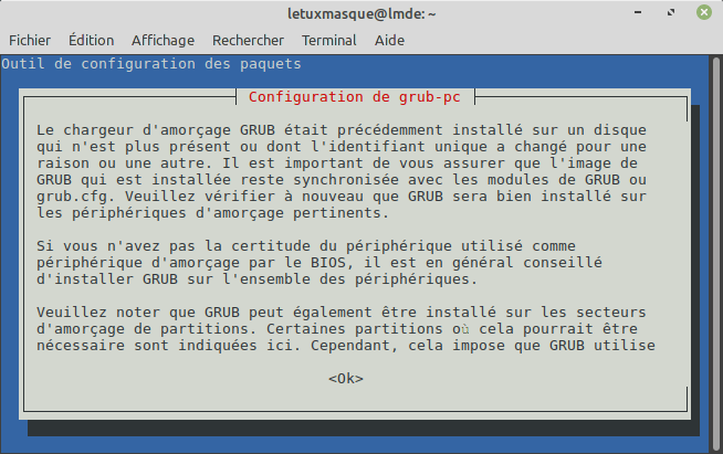 sudo apt-mark unhold nom_du_paquet.Je vais monter un maquette de LMDE 2 mis à niveau vers LMDE 3 puis vers LMDE 4 voir si je rencontre le même genre de problème que vous. Alors je reviendrais vers vous.