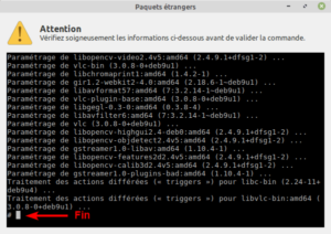 La lecture des résultats est très importante. En effet, elle vous permettra de savoir si des paquets empêchent la mise à jour. Alors, dans ce cas, il faudra les supprimer et éventuellement les ré-installer après…