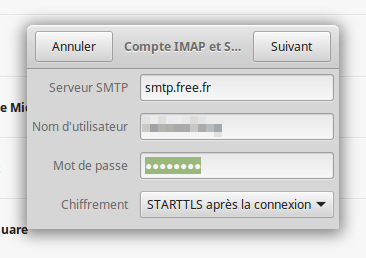 Puis, entrez les informations pour la connexion IMAP et le chiffrement puis validez.