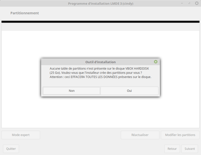 que le disque dur soi vide ou pas le partitioneur me réclame une racine ,j’arrive a installer Debian qui est réputé difficile et pas moyen d’installer Lmde3 , pouvez vous me donner un petit tuto