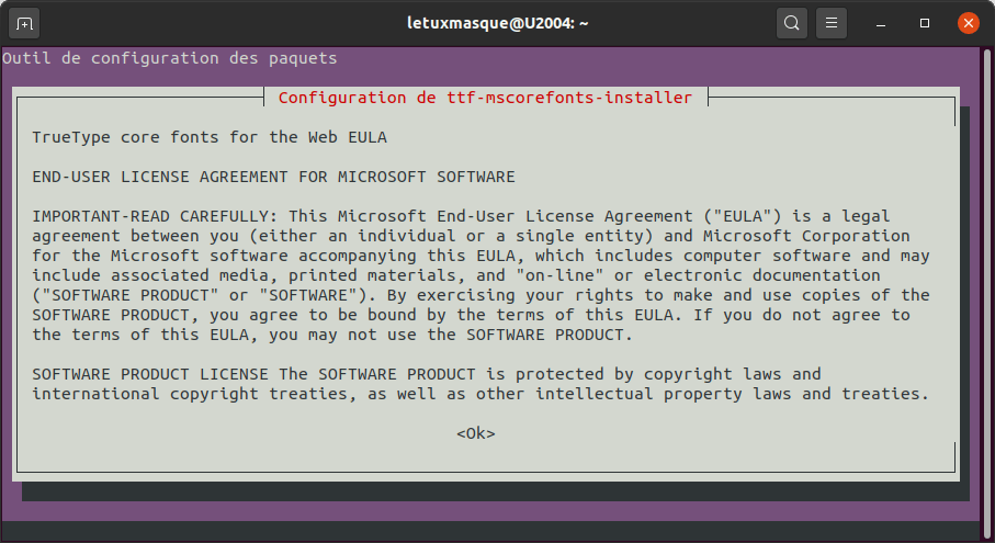 Par exemple, pour installer les polices Microsoft précédemment citées, faites :