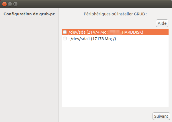 Si demandé, sélectionnez l’emplacement de GRUB.