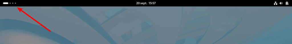 Aussi, lorsque vous positionnez le curseur de la souris dessus, avec la molette, vous pourrez naviguer d’un espace à l’autre. Et, bien entendu, lorsque vous cliquez dessus, vous ouvrez le panneau des activités et l’accès au menu des lanceurs d’application.