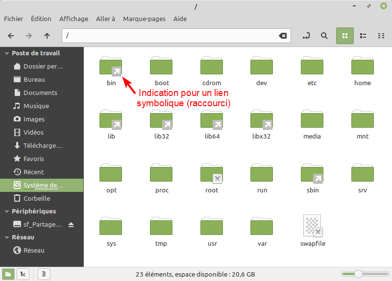 Liste des dossiers système Linux Mint 20 (avant)