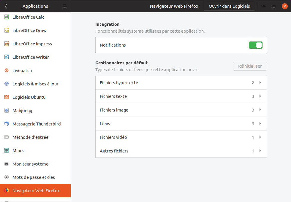 Dans le panneau de paramètres de GNOME 3.32, un nouveau panneau fait son apparition : Applications.