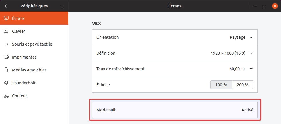 Hors dans les versions précédentes, il n’était possible que de gérer la température de couleur. Mais à présent, dans Ubuntu 19.04, vous pourrez l’ajuster.