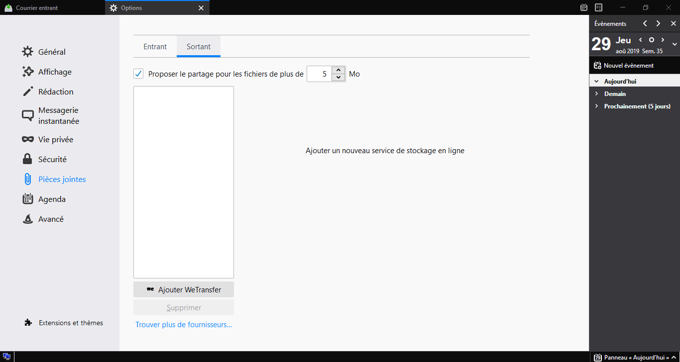 - l’amélioration de Filelink avec, entre autre, la possibilité d’ajouter des services autre que WeTransfer (utilisable sans compte) avec des extensions
