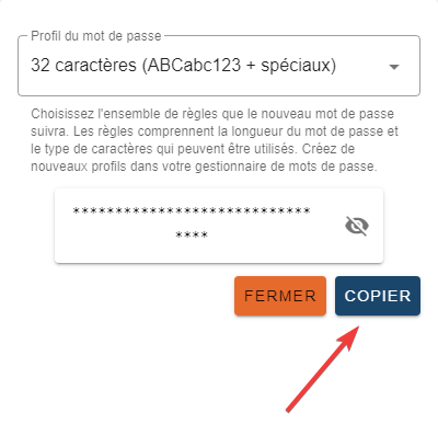 - et collez-le (Ctrl + V) dans le champ mot de passe du formulaire à compléter.