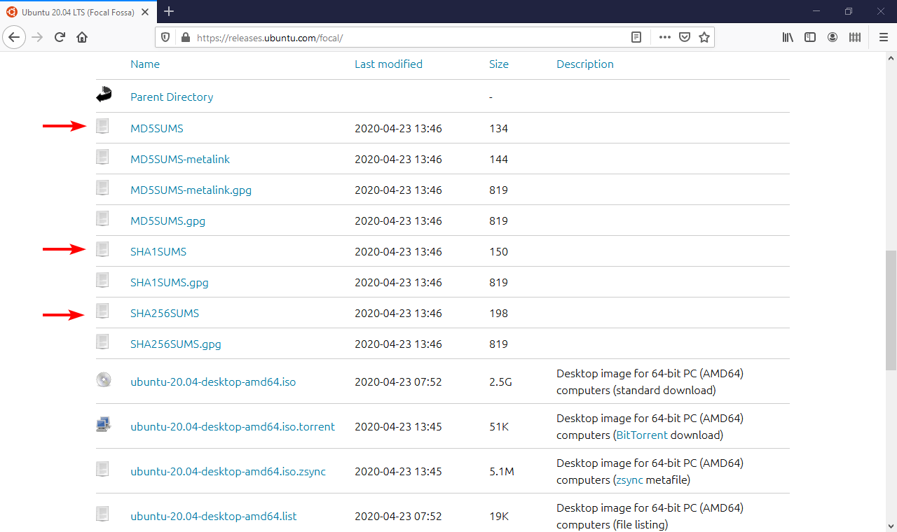 Les empreintes originales sont parfois mis à disposition à travers un fichier SHA256SUMS, SHA1SUMS ou MD5SUMS :