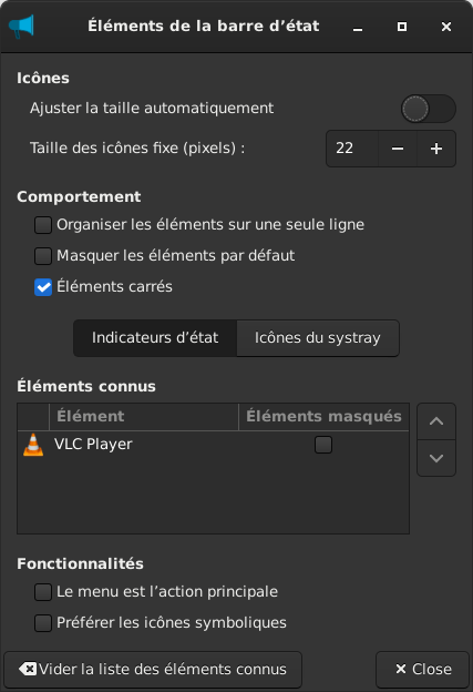 Puis, il inclut un nouveau plugin : Éléments de la barre d’état (systray) pour gérer les icônes de la barre d’état générées par Systray (ancien) ou StatusNotifier (le remplaçant plus moderne).